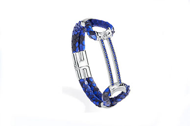 Vibrant, innovative and stylish bracelet made with genuine python leather. Cristian designed this masterpiece with double row of 0.75 carats blue sapphires and a finish in polished gold.