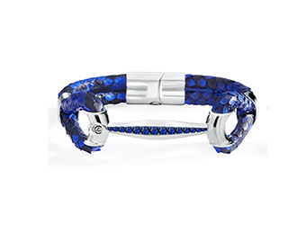 Python Leather-Single Black and Royal Bracelet