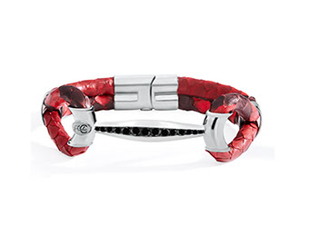 Vibrant, innovative and a colorful touch, featuring genuine python leather cord, describes this masterpiece. Cristian Rubio made it with a single row of black diamonds and a finish in polished gold.