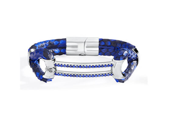 Vibrant, innovative and stylish bracelet made with genuine python leather. Cristian designed this masterpiece with double row of 0.75 carats blue sapphires and a finish in polished gold.