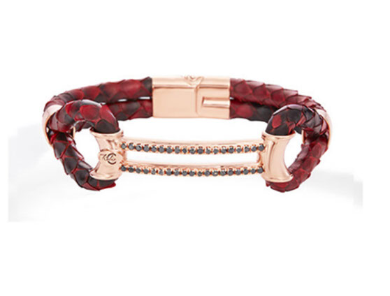 Innovative and stylish bracelet made with genuine python leather and double row 0.75 carats of black diamonds and a finish in polished rose gold. Cristian Rubio adds a casual but fine look with this handmade masterpiece.