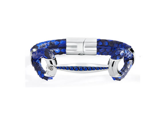 Python Leather-Single-Black and Royal Bracelet