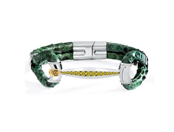 This leather piece adds a dash of luxury to your look. Handcrafted bracelet with a single row of yellow diamonds and a finish of polished gold. Cristian’s Rubio style gives you the most fashionable and powerful look to you.