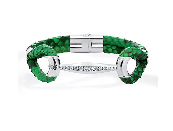 Cristian Rubio made this masterpiece wanting to give you an exotic and unique look. Single row 0.85 carats diamonds, soft python leather and a finish in polished gold.